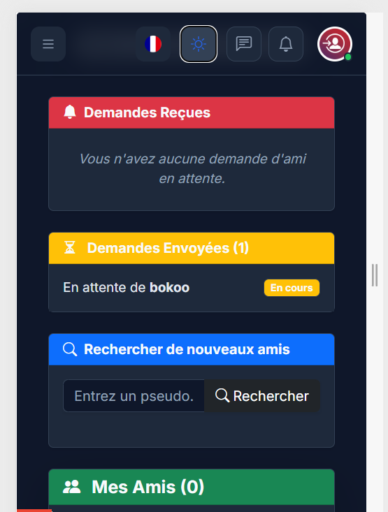 J'aurais mis la section pour rechercher un ami en haut de la page